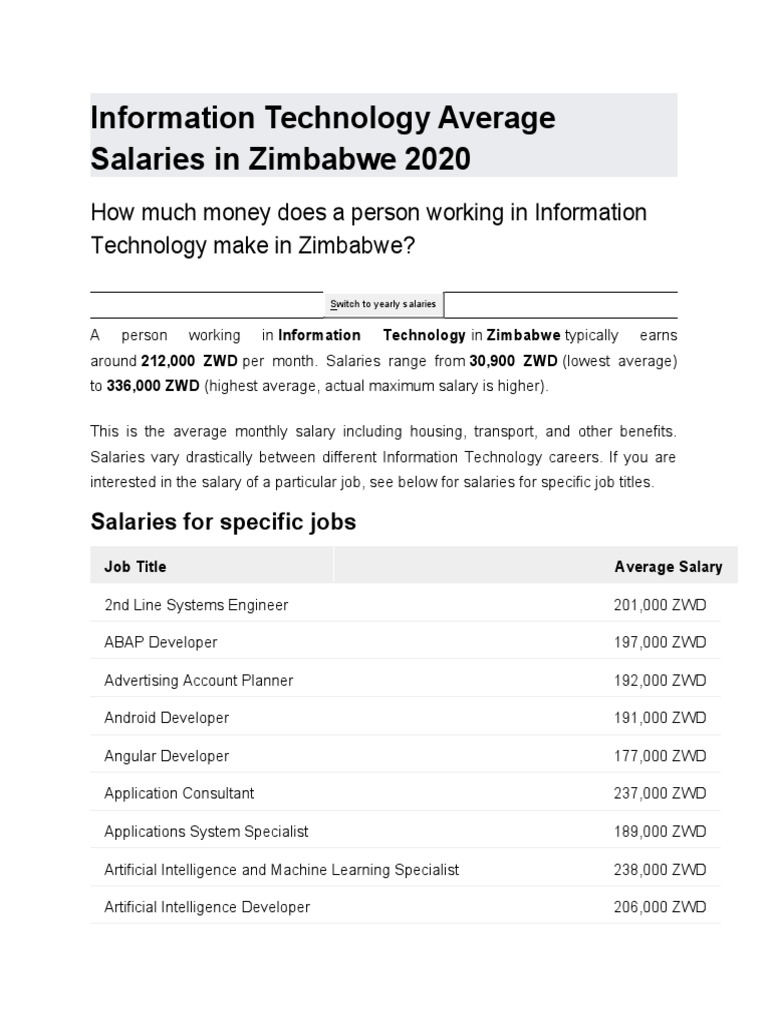 Information Technology Average Salaries In Zimbabwe 2020 Enterprise Resource Planning Salary