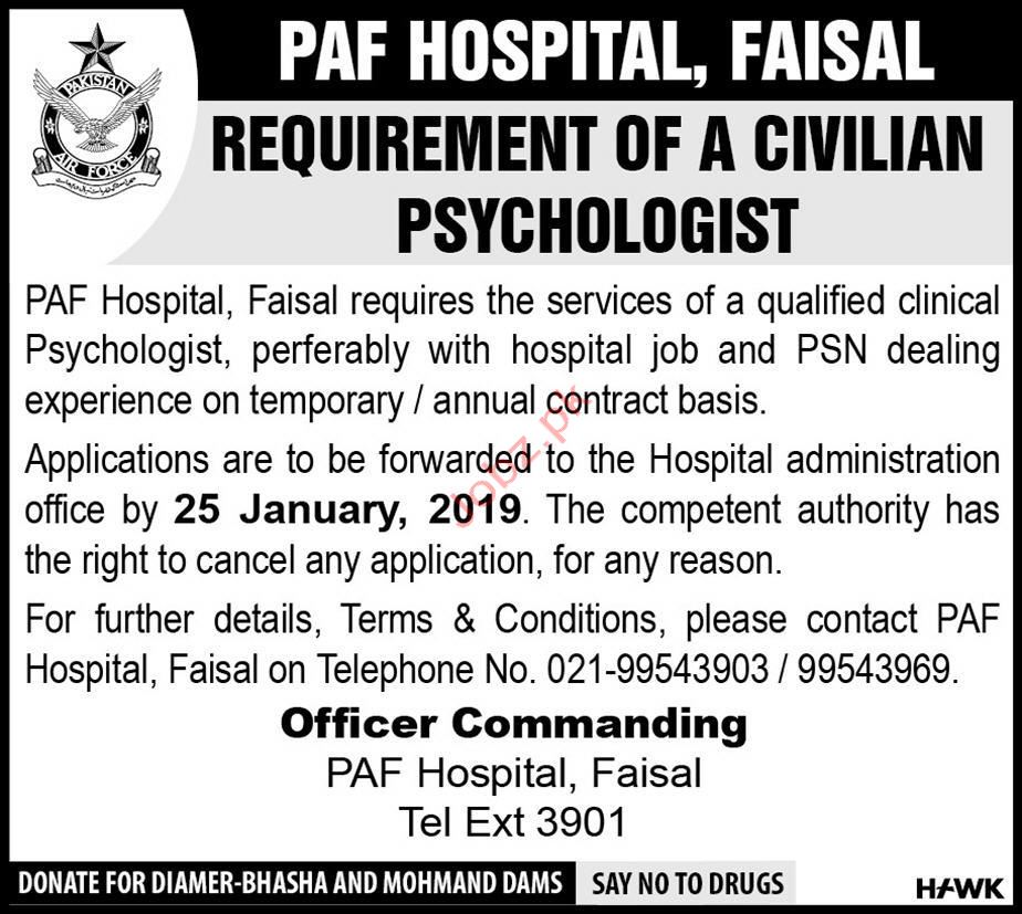 Paf Hospital Psychologist Jobs 2019 2021 Job Advertisement Pakistan